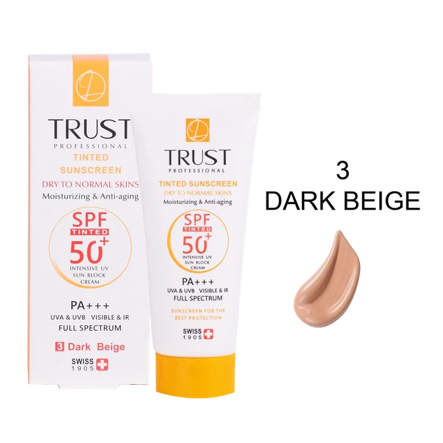 کرمهای ضدآفتاب رنگی تراست با SPF50+ از مرغوبترین و جدیدترین مواد اولیه موثره دارای حداکثر حفاظت دربرابر پرتوهای مضر خورشید ساخته شدهاند؛ این کرم با وجود بهرهمندی از بافتی سبک، دربرابر آسیبهای وارده توسط نور خورشید به خوبی از پوست محافظت و با مهار رادیکالهای آزاد از تخریب سلولهای پوستی جلوگیری میکند. همچنین با مصرف این محصول، بدون بسته شدن منافذ پوستی و ایجاد خلل در تنفس سلولهای پوستی، پوستتان آبرسانی میشود.