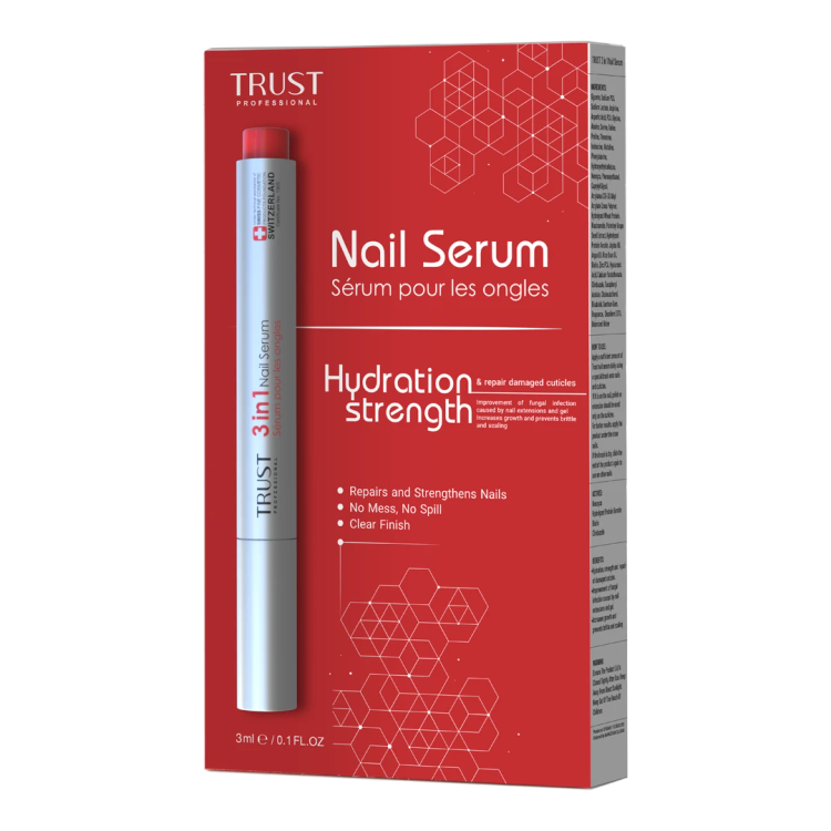 امروزه اکثر مشکلات مربوط به ناخن که شامل شکنندگی، پوسته پوسته شدن ناخن و کوتیکول، بلند شدن صفحهی ناخن، ایجاد برجستگی و یا فرورفتگی در سطح ناخن، رشد نامناسب، عفونت، التهاب و قرمزی بافت اطراف ناخن در اثر آسیب به ماتریکس ناخن و یا کاشت و زیباسازی غیراصولی ناخن ایجاد می شود. بنابراین برای درمان یا رفع مشکلات ناخن میبایست از محصولات مراقبتی استفاده کرد که بتواند ناخنها را ترمیم و مستحکم کرده و یا در صورت وجود عفونت قارچی، به درمان آنها کمک کند. برای درمان شکنندگی ناخنها که با کمبود رطوبت در ناخن ایجاد میشود، میبایست از محصولاتی استفاده کرد که به میزان کافی سطح ناخن را آبرسانی میکنند. کراتین، پروتئین اصلی تشکیل دهندهی صفحه ناخن است. زمانی که به دلایل مختلف میزان کراتین در بستر ناخن کم شود و یا اتصالات بین رشته ها از بین برود، استحکام و یکپارچگی ناخن کم شده و ناخن شکننده یا پوسته پوسته (به اصطلاح پلیسه) میشود. بنابراین استفاده از محصولاتی که ساخت کراتین در ناخن را افزایش دهد، استحکام و سفتی ناخنها را بهبود میبخشد. سرم تقویت کننده ناخن سه در یک تراست با داشتن ترکیبات آبرسان و ویتامینهای موثر، استحکام و رشد ناخن را افزایش داده و به ترمیم آسیبهای کوتیکول کمک میکند. ترکیبات ضد قارچی موجود در این محصول، ضمن بهبود عفونتهای قارچی ایجاد شده در ناخن، التهاب بافت اطراف ناخن را بهبود بخشیده و با حفظ سلامت ناخنها، زیبایی ناخنهای را دو چندان میکند.