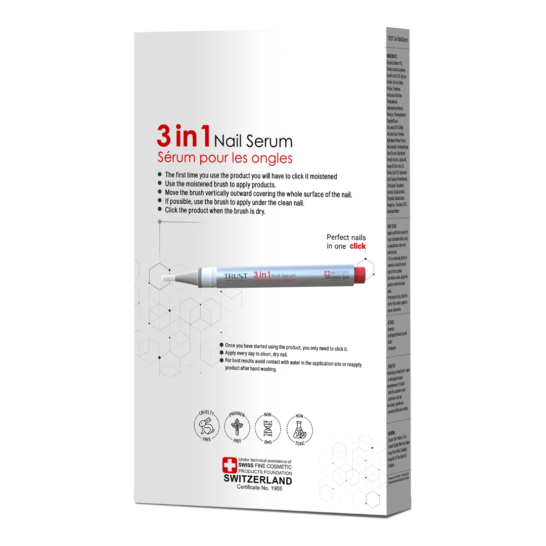 امروزه اکثر مشکلات مربوط به ناخن که شامل شکنندگی، پوسته پوسته شدن ناخن و کوتیکول، بلند شدن صفحهی ناخن، ایجاد برجستگی و یا فرورفتگی در سطح ناخن، رشد نامناسب، عفونت، التهاب و قرمزی بافت اطراف ناخن در اثر آسیب به ماتریکس ناخن و یا کاشت و زیباسازی غیراصولی ناخن ایجاد می شود. بنابراین برای درمان یا رفع مشکلات ناخن میبایست از محصولات مراقبتی استفاده کرد که بتواند ناخنها را ترمیم و مستحکم کرده و یا در صورت وجود عفونت قارچی، به درمان آنها کمک کند. برای درمان شکنندگی ناخنها که با کمبود رطوبت در ناخن ایجاد میشود، میبایست از محصولاتی استفاده کرد که به میزان کافی سطح ناخن را آبرسانی میکنند. کراتین، پروتئین اصلی تشکیل دهندهی صفحه ناخن است. زمانی که به دلایل مختلف میزان کراتین در بستر ناخن کم شود و یا اتصالات بین رشته ها از بین برود، استحکام و یکپارچگی ناخن کم شده و ناخن شکننده یا پوسته پوسته (به اصطلاح پلیسه) میشود. بنابراین استفاده از محصولاتی که ساخت کراتین در ناخن را افزایش دهد، استحکام و سفتی ناخنها را بهبود میبخشد. سرم تقویت کننده ناخن سه در یک تراست با داشتن ترکیبات آبرسان و ویتامینهای موثر، استحکام و رشد ناخن را افزایش داده و به ترمیم آسیبهای کوتیکول کمک میکند. ترکیبات ضد قارچی موجود در این محصول، ضمن بهبود عفونتهای قارچی ایجاد شده در ناخن، التهاب بافت اطراف ناخن را بهبود بخشیده و با حفظ سلامت ناخنها، زیبایی ناخنهای را دو چندان میکند.