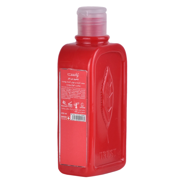 شامپو بدن انار تراست، با دارا بودن عصاره انار در ترکیباتش، از پوست در برابر پرتوهای UV خورشید مراقبت کرده و ساختار آن را حفظ میکند. وجود کلاژن در این محصول، باعث جوانشدن پوست و افزایش استحکام و سفت شدن آن میشود.